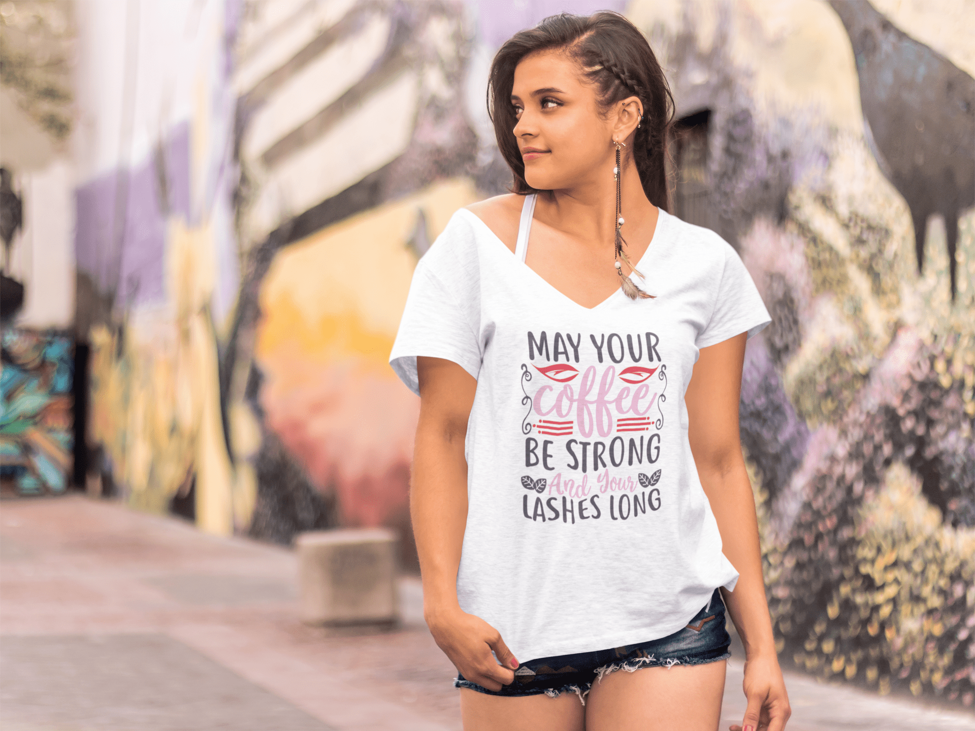 ULTRABASIC Women's T-Shirt May Your Coffee Be Strong And Your Lashes Long - Funny Make Up Quotes