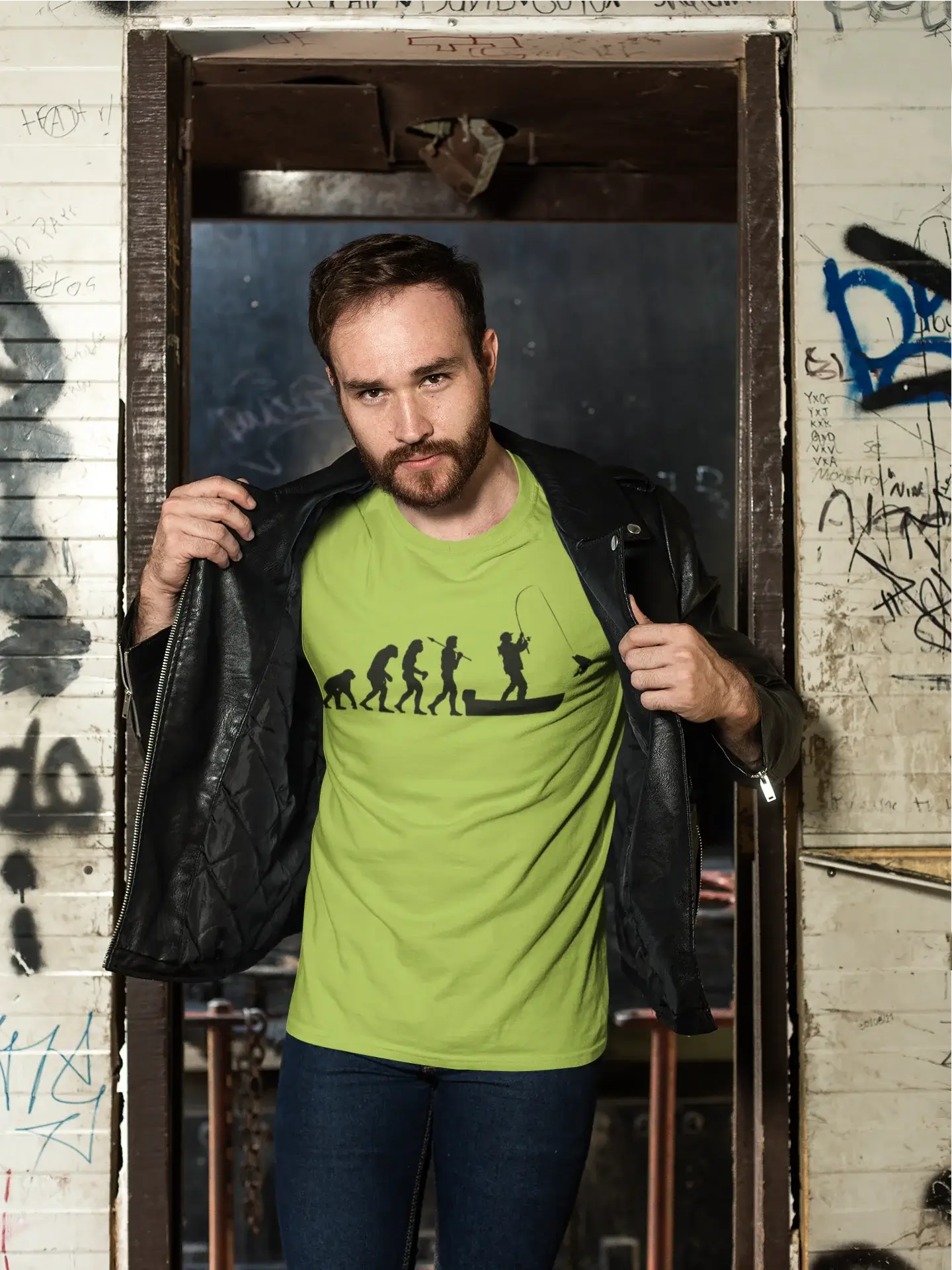 Evolution of the Fishing, Men's T shirt, 100% semi-combed Ringspun cotton, sizes: XS, S, M, L, XL, XXL, 3XL, 4XL, 5XL.
